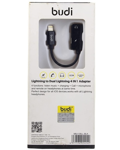 BUDI LIGHTNING TO DUAL LIGHTNING 4IN1 ADAPTER M8J139LL BLK